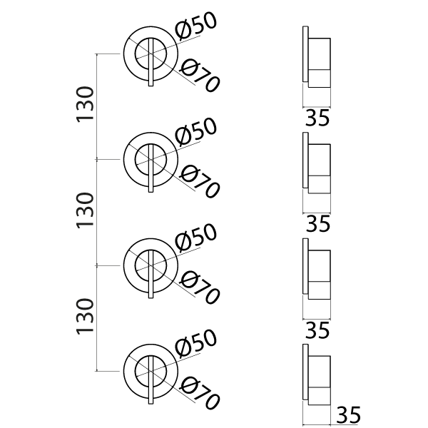 Built-in part for wall Thermostatic mixer with 3 shut off