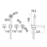 Built-in part for mixer, diverter 2 Way, exit for hand-shower and spout